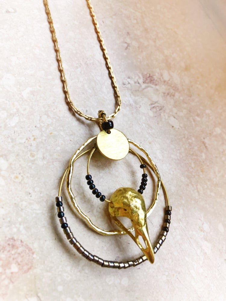 Collier sautoir en laiton et perles de verre miyuki. Chaînette upcyclee.